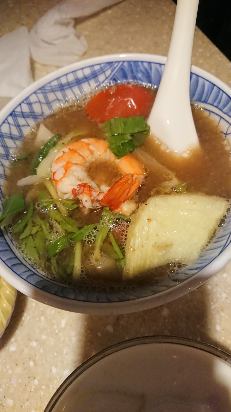 ベトナム風トムヤムクンということでしたが、パイナップルが入っていて甘みが強い独特な味でしたが美味しい。